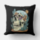 Bring bold surrealism into your space with this desert-themed skull pillow. The artwork features a giant skull landscape with cacti, mesas, a blazing sun, and a lounging skeleton swinging in a hammock inside the skull. A striking mix of spooky and chill vibes, this design makes a statement in gothic, boho, or alternative home décor.