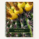 Desert Southwest personalised notebook, with a green barrel fishhook cactus design. With a green and yellow border, you can customise your own name with yellow text. A botanical garden item with a touch of Arizona for your home office.