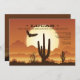This golden-brown invitation features the silhouette of a hawk and desert landscape against a large sun. It's perfect for any celebration with a western theme. Design by Vecteezy Desert Scene Illustration.