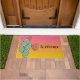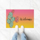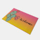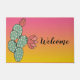 Ombre Pink and orange background has the colours of a beautiful desert sunrise, with blooming prickly pear cactus and "Welcome" text in modern script