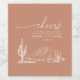 Designed for those who love simplicity with a hint of earthiness, the pieces in this wedding stationery suite are set against arid backgrounds in a serene colour palette that harmonises with the minimalistic design elements, including understated visuals of desert flora – a muted nod to the quiet splendour of the desert. The wedding wine label, shown here in white on terra cotta, with a saguaro cactus desert landscape sketch, provides a template to easily add your names and wedding date. Search ID1019 to see all the products in this wedding suite.