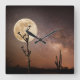 Deserts | Saguaro Cactus With Birds in Desert Square Wall Clock