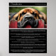 A large, gentle Bloodhound, a picture of Desiderata-like serenity, rests its head on a bright red fence, eyes closed in peaceful slumber. The background, a soft blur of green foliage and gentle sunlight, creates a haven of tranquillity. A poetic text overlay, in the style of a vintage inspirational quote, offers calming, philosophical reflections on peace and happiness, enhancing the warmth and soothing nature of the scene.