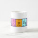 Desiderio spelled out as D Es I D Er I O (Deuterium Einsteinium Iodine Deuterium Erbium Iodine Oxygen) on a mug for the scientist in you.