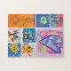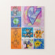 Create your own custom jigsaw puzzle with your child's unique artwork. Upload a photo or scan of your kids' art into the template spaces. Use the design tools to customize the background colors and add text or photos. Send a special gift for a birthday, Christmas, Valentine's Day, Mother's Day, Father's Day, etc. for grandparents, family and friends. A perfect special childhood keepsake to keep or share!