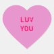 Create your own customised conversation heart design on a heart-shaped sticker for Valentine's Day. You can change the "LUV YOU" message to something that suits your sweetie. You can also choose the "Customise it!" feature and change the heart's background colour.