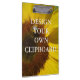 Be yourself in school or in the office and design your own clipboard. Your clipboard should represent who you are. Swap out the photo if you want and choose from many text choices. Don't be satisfied with those boring store bought clipboards.
