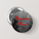 A custom designated driver button with a spooky Halloween sky with misty trees along a dark haunted road, gothic ravens and a cloudy full moon.