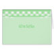 Designer greeting cards that feature a mint green background with a chequered stripe across the top. Customise these pretty greeting cards to send to family and friends.