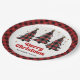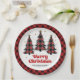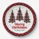 Designer Plaid Christmas Tree Custom Name Paper Plate