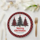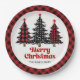 Designer Plaid Tree Holiday Custom Name Paper Plate