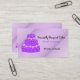 Elegantly designed business card for a cake decorating business, baking, bakery, home business. A purple three tier wedding cake.