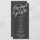 Dark Slate, chalkboard inspired text design printed rack card wedding programs with white text or change colour of text as preferred.