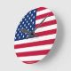 Order this patriotic wall clock in 3 styles using the customise it tool on this page. This round wall clock has the image of the American flag for all you patriotic design lovers. Celebrate the 4th of July using this clock on the wall for your guests. Celebrate America's birthday by using this clock in your home, office, or apartment.