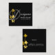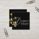 Designer Yellow Rose Floral on Black Monogram Square Business Card