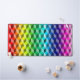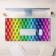 Optical illusion of three dimensional blocks. Rainbow colors flow from side to side (rec, orange, yellow, green, blue, purple and pink).