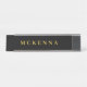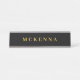 Custom nameplate with black and gold design for office desks, front counters, or conference setups. Great for bulk ordering for teams, events, or office redecorating.