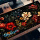 Rich coloured wildflowers on a dark background, personalised desk pad.