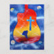 A blue figure sits in a red area with his head in his hands while a blue and white cross floats about him against a red, orange, yellow background. The entire scene is outlined in the shape of an acoustic guitar superimposed on a blue space scene with various planets and stars. Done with nothing but spraypaint (no special tips or airbrushing). Titled "Despair" and one of three in the series