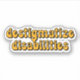 A yellow retro typography design with the words "destigmatize disabilities" to support and promote neurodiversity awareness, adhd, and autism acceptance.