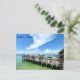 This beautiful Destin Florida boardwalk photography postcard features tables with umbrellas next to the lovely ocean water.