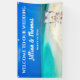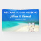 This Blue-Sky Destination Beach Wedding Reception Hanging Banner, is designed with a beautiful turquoise coloured water backdrop, and Wedding Ceremony Arbour on a white sandy beach. To personalise, simply insert the Bride & Groom's Names and Wedding Date into our easy template, replacing the sample text. Enjoy!