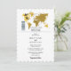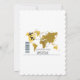 This design features a boarding pass theme. It showcases a gold map of the world along with two aeroplanes making a heart shape as they travel around the world. This destination themed wedding design is set out like a boarding pass with the date of the wedding personalised in the squares. The reverse side showcases the boarding pass with personalised wedding date. A romantic destination design with an elegant touch. Ideal for a destination wedding no matter where in the world. The perfect all season travel wedding invitation design. Matching wedding stationery items and other wedding invite formats are also available.