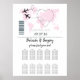 This design features a boarding pass theme. It showcases a pink map of the world along with two aeroplanes making a heart shape as they travel around the world. This destination themed wedding design is set out like a boarding pass with the date of the wedding personalised in the squares. A romantic destination design with an elegant touch. Ideal for a destination wedding no matter where in the world. The perfect all season travel wedding seating chart design. Matching wedding invitations and other stationery items are also available.