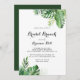 This destination tropical bridal brunch bridal shower invitation is perfect for a simple wedding shower. The design features hand-painted watercolor green palm and banana leaves neatly arranged into beautiful bouquets.