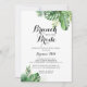 This destination tropical brunch with the bride shower invitation is perfect for a modern wedding shower. The design features hand-painted watercolor green palm and banana leaves neatly arranged into beautiful bouquets.
