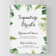 This destination tropical green signature drinks sign is perfect for a simple wedding. The design features hand-painted watercolor green palm and banana leaves neatly arranged into beautiful bouquets.