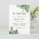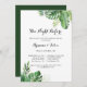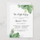 This destination tropical night before rehearsal dinner invitation is perfect for a simple wedding rehearsal. The design features hand-painted watercolor green palm and banana leaves neatly arranged into beautiful bouquets.