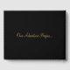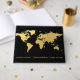 Destination wedding Guest book featuring a gold map on an editable colour background (shown here in gold and black).
