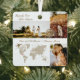Celebrate your love story with the Destination Wedding Map Photo Collage Keepsake Metal Ornament. The front side features an elegant three-photo collage layout to showcase your favourite memories from your destination wedding or honeymoon. A romantic “Happily Ever After Begins” script accents the design, along with a customisable passport stamp personalised with your wedding date and location name. A detailed world map with an aeroplane and heart pinpoint highlights your special place — simply move the heart in the design tool to mark your destination. The reverse side offers a full-photo layout to display one cherished image, personalised with your names, location coordinates, and a custom monogram passport stamp. A meaningful keepsake for newlyweds or as a thoughtful gift, this ornament beautifully blends travel, romance, and personalisation, making it the perfect reminder of where your forever journey began. Original design by ©Moodthology Papery