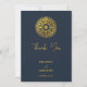 A navy blue destination wedding passport design with gold compass and travel elements. This design is ideal for all Spring, Summer, Fall and Winter destination weddings. An elegant navy blue and gold wedding travel design with passport layout, world map and custom couple photo. A modern destination wedding thank you design with elegant elements. Matching wedding invitations and other stationery items are also available.