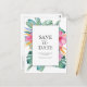 These custom save the date postcards feature a boarder of elegant watercolor tropical flowers and palm leaves. The words "Save the Date" are typeset in charcoal grey over a crisp white background. use the template fields to type your personalised information. The card reverses with space to add additional information and return address. To see more of this destination wedding theme visit www.zazzle.com/dotellabelle