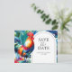 Rewrite this listing for a wedding save the date postcard. Use the following keywords for this listing: tropical destination wedding save the date postcards, key west, Florida, keys, weddings, bridal shower save the date invitations, template, custom, "Set the tone for your special day with our tropical Key West, Florida wedding save the date invitations, a perfect prelude to your love story. Each invitation is adorned with a watercolor rooster, features and palm leaves, elegantly framing the bride and groom's names. The charm continues on the reverse side, featuring a unique bold colourful pattern that captures the essence of your romance. Personalise these invitations with ease using the provided template fields. Ideal for destination weddings and bridal showers, these cards are a beautiful way to share your joy. Explore the full wedding invitation suite at www.zazzle.com/dotellabelle and be captivated by the unique designs crafted by Victoria Grigaliunas of Do Tell A Belle. Your journey to forever begins with a touch of beauty and a hint of Sol the rooster magic."