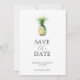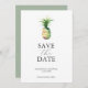 Announce your engagement with this watercolor pineapple save the date card. It features a mix of classic and script typography on a crisp white background. The card reverses to a complimentary sage green colour. The colours can be customised to suite your wedding colour scheme. Use the template fields to personalise with your name and wedding date. Choose from a variety of quality card stocks. My favourite for this is felt white. A tropical yet elegant design for destination weddings and engagement announcements. To see the matching wedding stationery suite visit www.zazzle.com/dotellabelle