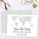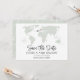 Destination wedding world map save the date invitation. Travel themed, adventure begins wedding.