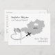 Stylish destination wedding save the date postcard for couples getting married in Austria. With a silver grey silhouette map, air plane and sweeping heart. Very cool and easy to customise with your personal details.