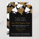 Perfect for office parties, pre-wedding parties and more, this Las Vegas casino themed invitation features faux gold glitter and white card suits on a black background with customised text and a matching patterned backer.