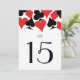 Traditional red and black card suits on white are a classic addition to the Destiny wedding suite for reception decoration. Mark your tables in a very Vegas way and make it easy for guests to find a seat. Perfect for a Las Vegas wedding in a little chapel off the strip, all you need is love and a witness or two!