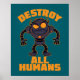 Vector cartoon illustration of an angry robot getting ready for battle with Destroy All Humans text. Keywords: robot, droid, android, warrior, battle, gladiator, fight, mean, angry, mad, orange, black, machine, future, artificial intelligence, cartoon, vector, nasty, cyborg, destroy, humans
