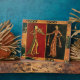 Detail from a wedding chest depicting a musician a plaque
