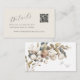Elevate your bohemian celebration with this Soft Organic Cotton & Eucalyptus Details Enclosure Card. The front showcases essential information via a QR code and website details on a soft, beige background, while the back features a delicate rustic bouquet of watercolor cotton and eucalyptus. The bride and groom's initials, connected by a heart, add a personal touch to your boho-inspired wedding suite.
