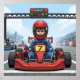A comic illustration of a young driver at the start of a race, ready to go. The bold colours and dynamic style make this design perfect for a variety of products.