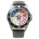 My husband loves the watch, he likes the dial, the graphics, the band, and it keeps perfect time.