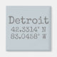 Detroit Michigan Latitude and Longitude map coordinates in distressed urban font