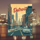 Capture the heart of Motor City with this vintage-style Detroit postcard. Showcasing classic cars cruising through downtown streets lined with high-rises, this retro illustration reflects the iconic automotive and architectural spirit of Detroit. A perfect gift for lovers of American nostalgia, car culture, and cityscape art.