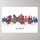 Elegant Watercolor Skyline of Detroit, the largest city in the U.S. state of Michigan